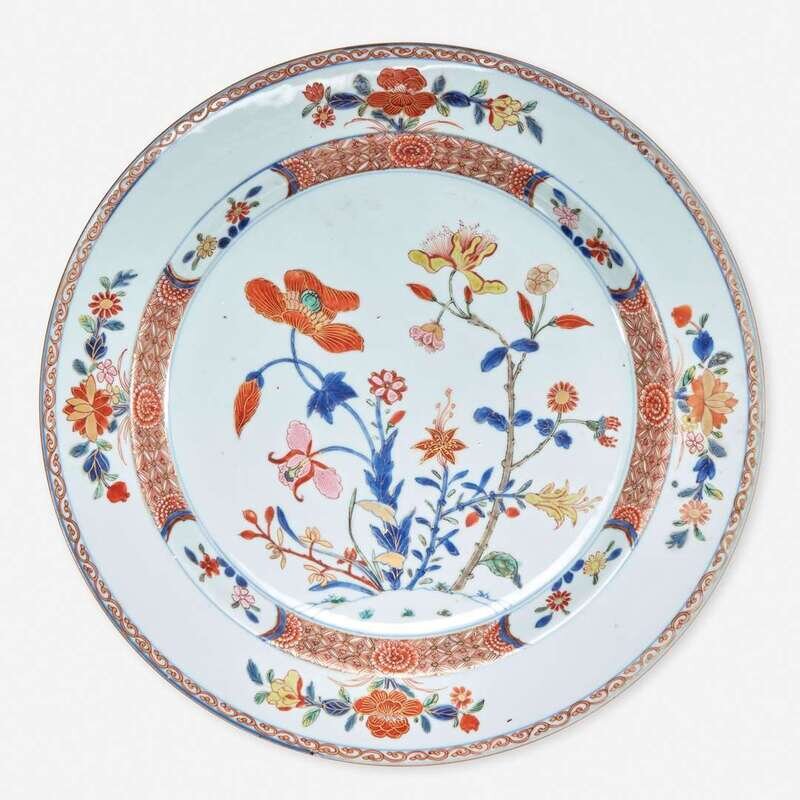 An unusual Chinese export porcelain "rose-verte" floral-decorated charger 五彩出口瓷大盘 Kangxi/Yongzheng period ? ?????