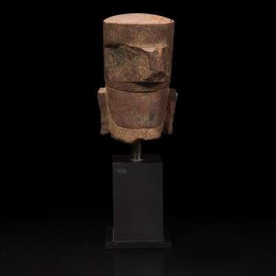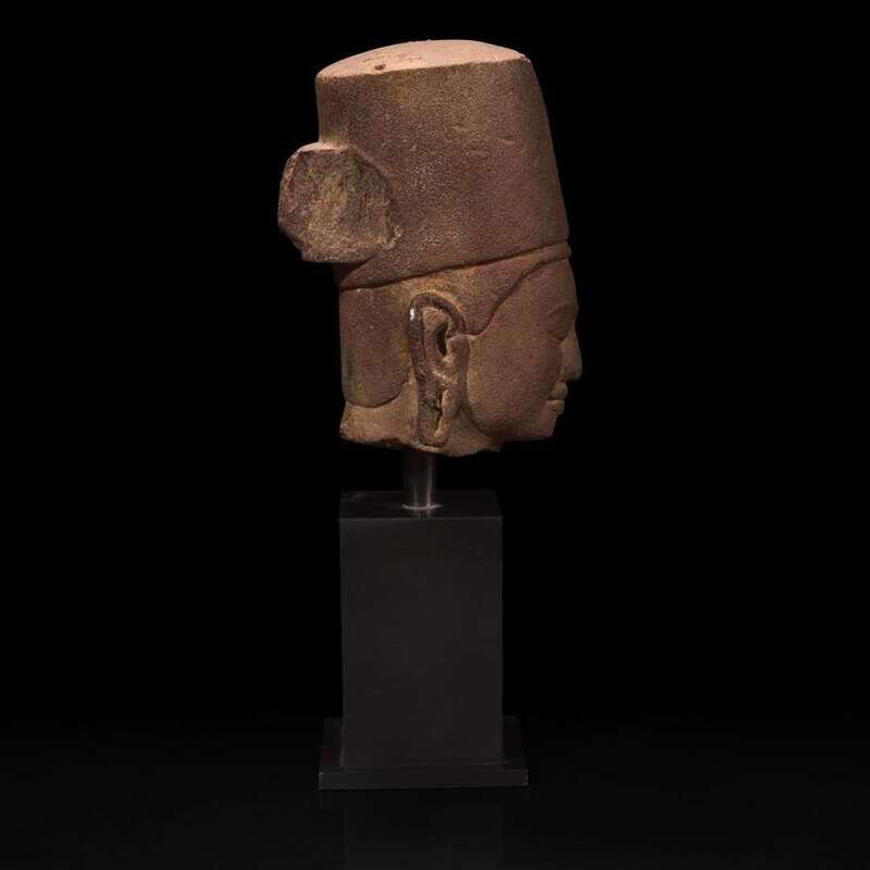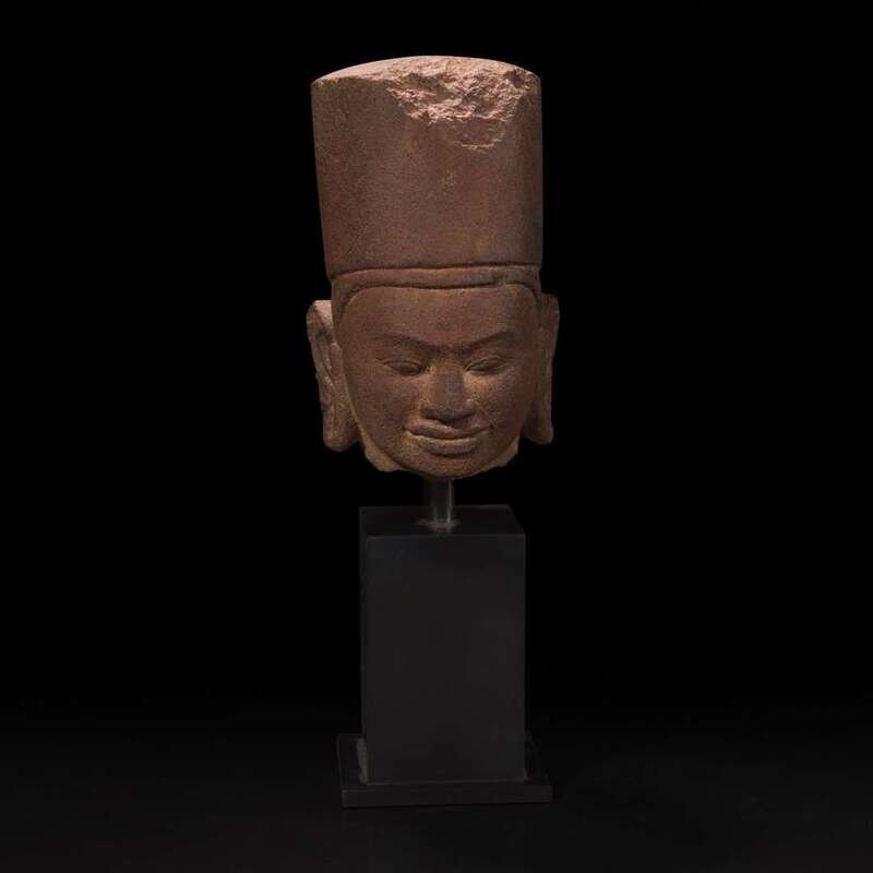 A carved red sandstone head of Vishnu in Khmer style 高棉风格红砂岩吡湿奴头像