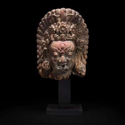 A Nepalese carved wood mask of Bhairava 尼泊尔陪胪木面具 15th-17th century ???????