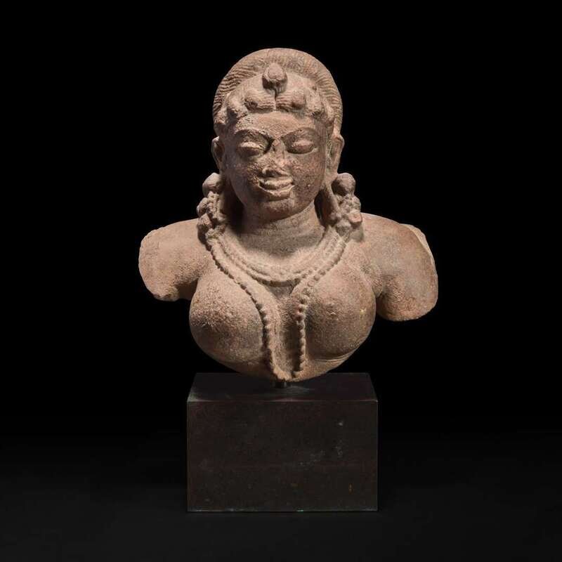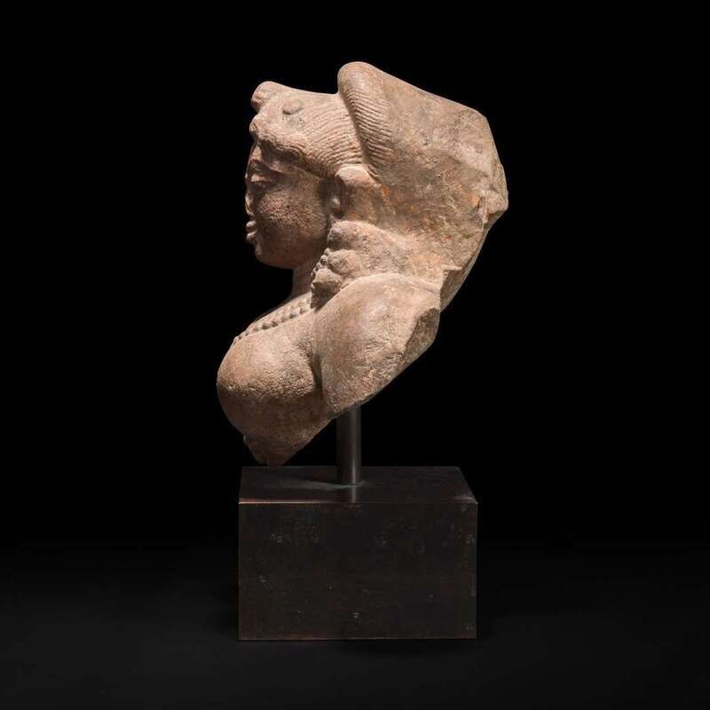 An Indian carved stone bust of a female deity 印度石雕女性神像 12th Century or earlier ???????