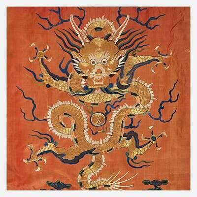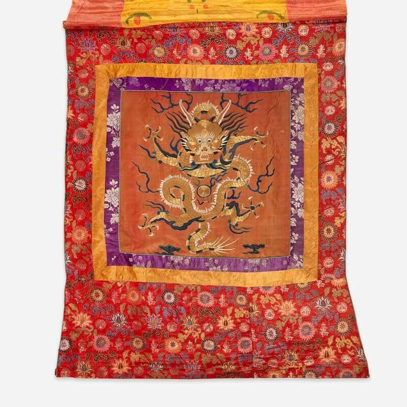 A Sino-Tibetan silk needlework "Dragon" panel 刺绣龙纹