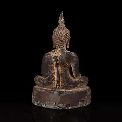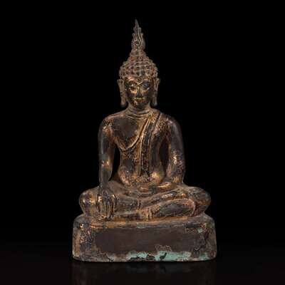 A Thai gilt lacquered bronze seated Buddha 泰国鎏金铜佛造像坐像