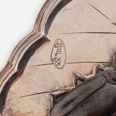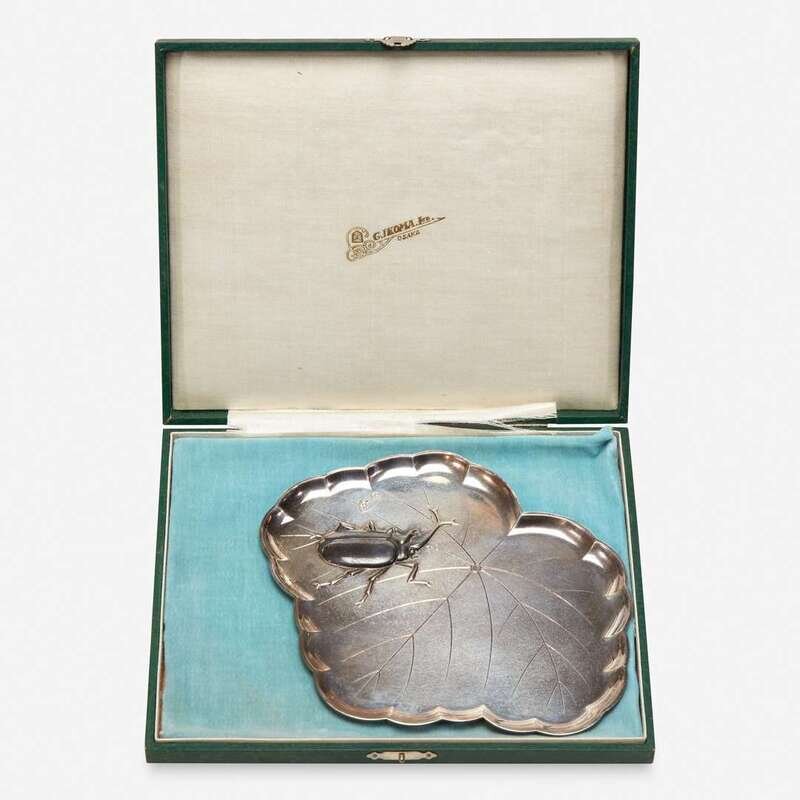 A Japanese silver "Kiri Leaf and Staghorn Beetle" tray 日本银托盘