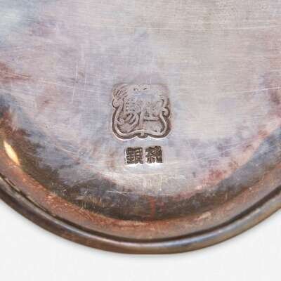 With maker's marks on the front, retailer's mark and stamped "jungin" on the back, with original G. Ikoma Ltd. case. Approximately 4.35 ounces troy.