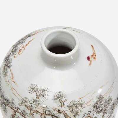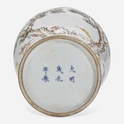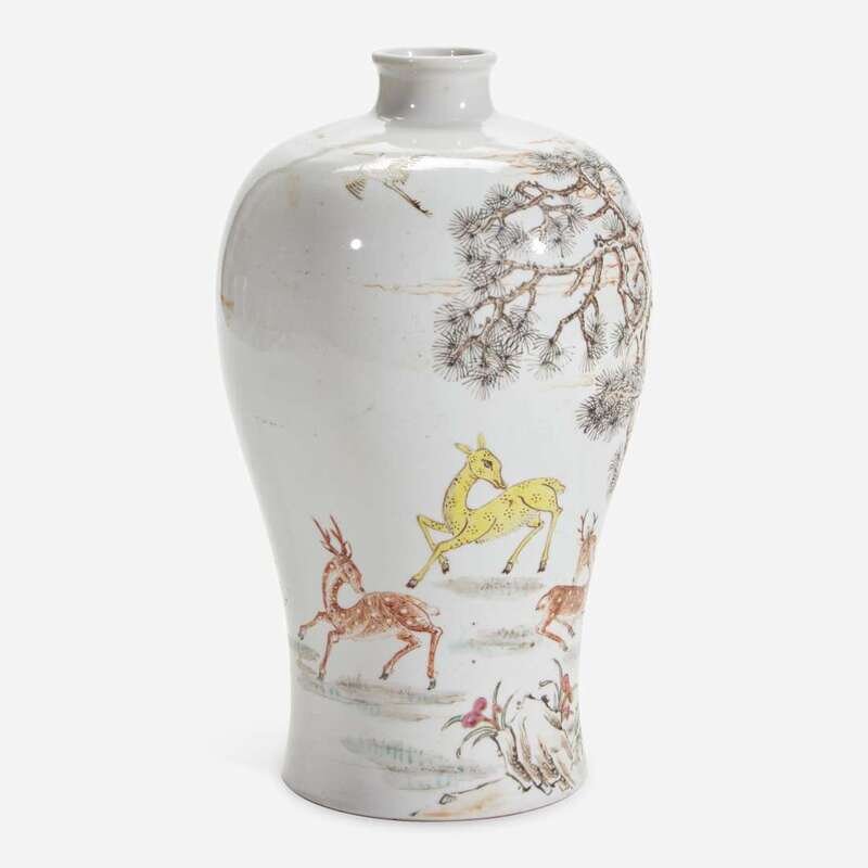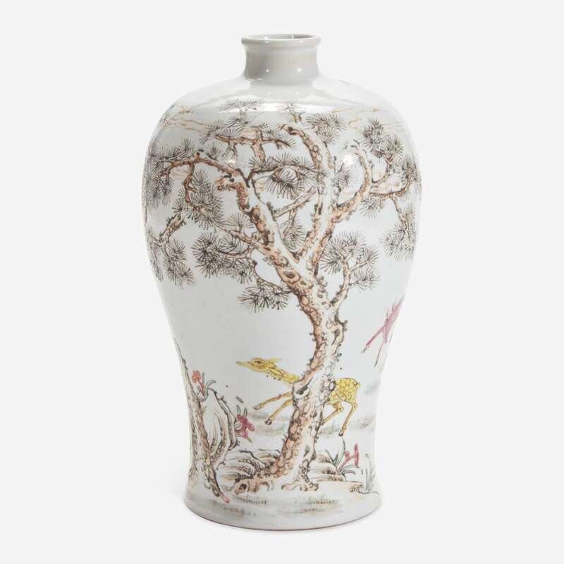 A Chinese famille rose-decorated "Deer and Crane" meiping vase 粉彩“鹿鹤”梅瓶 Chenghua six-character mark but later ????? ???????