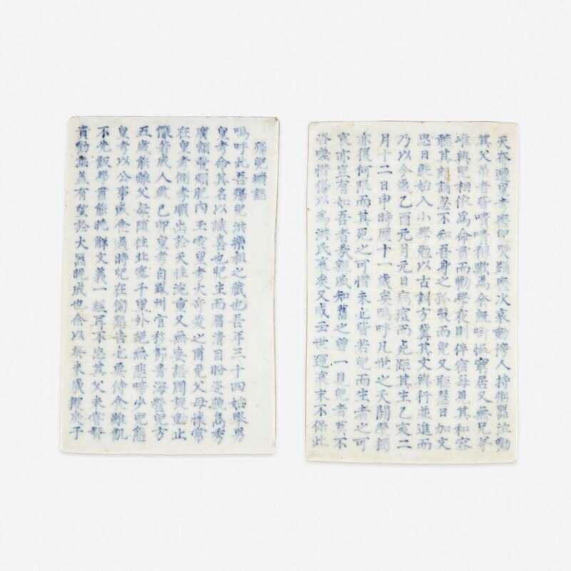 Each rectangular panel with a lengthy inscription, one side of each also inscribed (2).