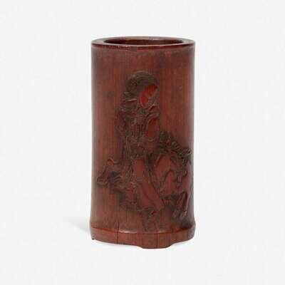 A small Chinese carved bamboo brush holder 竹雕小笔筒 18th/19th century or earlier ??????????