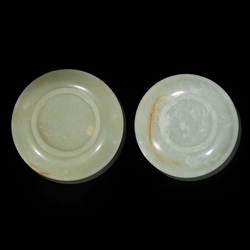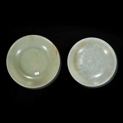 Two similar Chinese jade circular dishes 玉盘一组两件