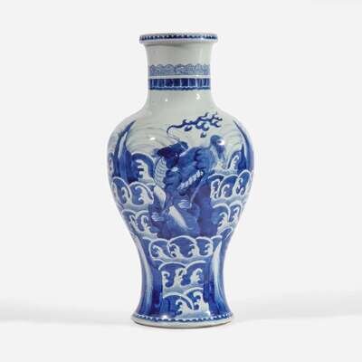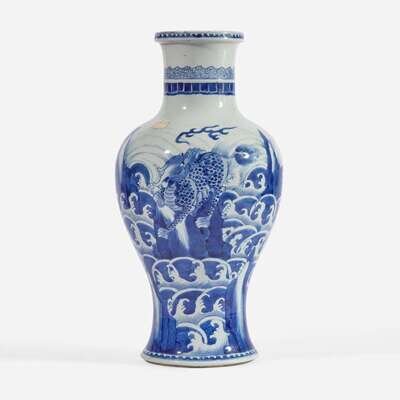 A large Chinese blue and white porcelain baluster vase 海水江崖瑞兽青花大瓶