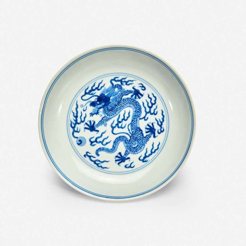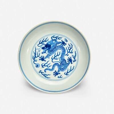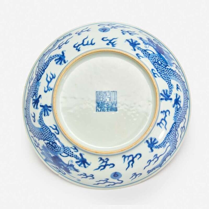 A Chinese blue and white porcelain “Dragon” dish 青花龙纹洗 Qianlong six-character seal mark and of the period ????? ? ??