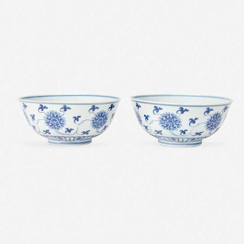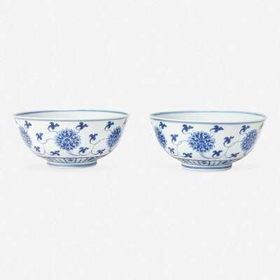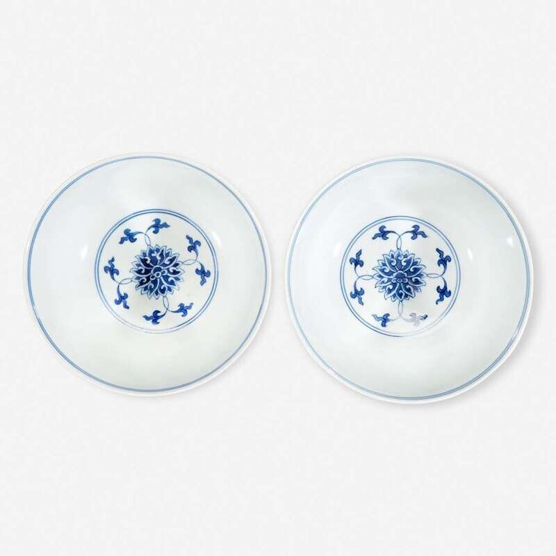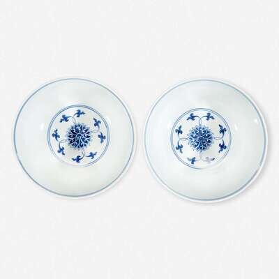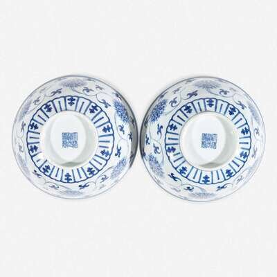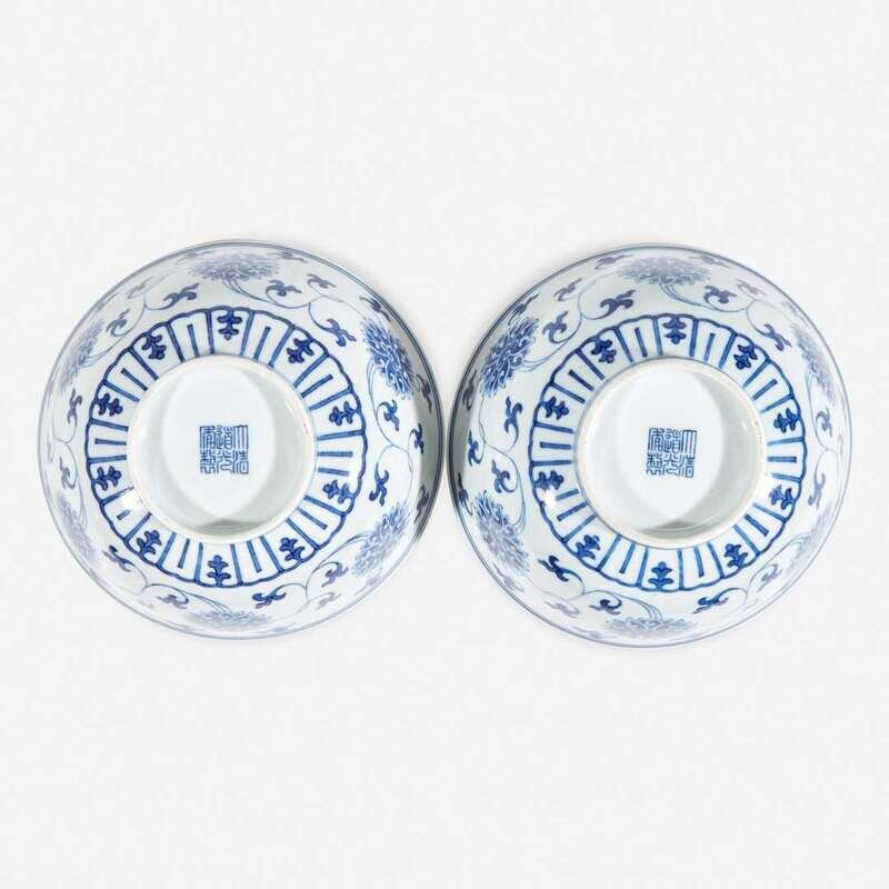 A pair of Chinese blue and white porcelain bowls 青花缠枝莲纹碗一对 Daoguang mark and probably of the period ??? ????