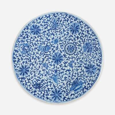 A Chinese blue and white porcelain circular plaque 青花缠枝花卉瓷板