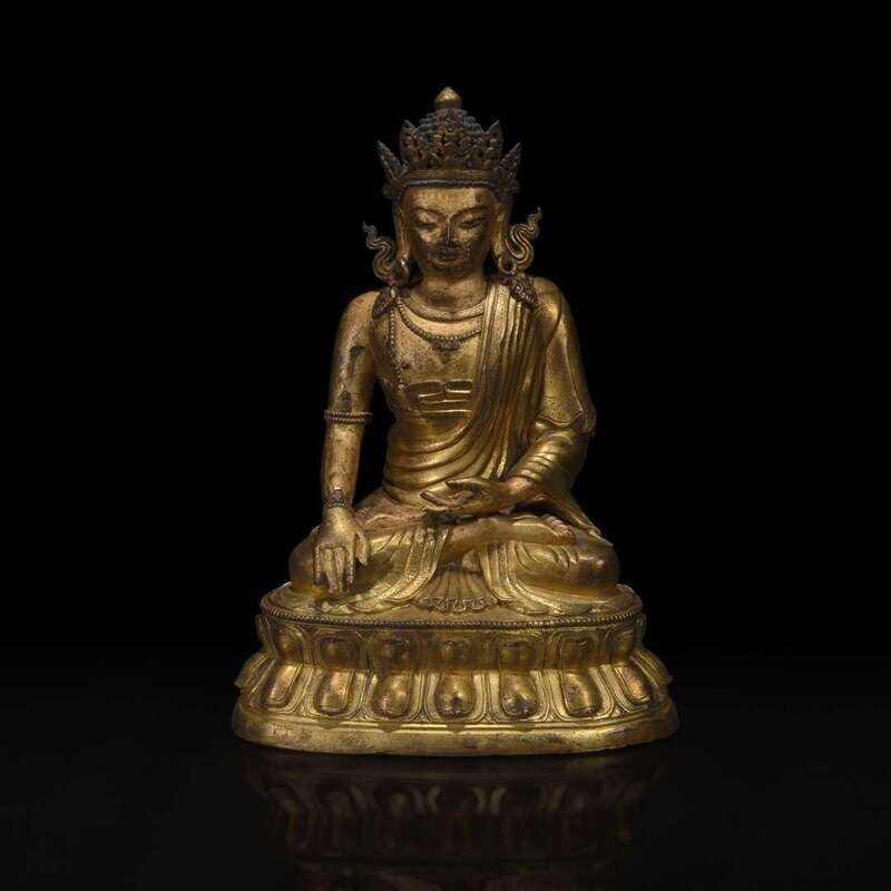 A Sino-Tibetan gilt bronze figure of Akshobhya 中原或藏传佛教阿閦佛铜造像 18th century ????