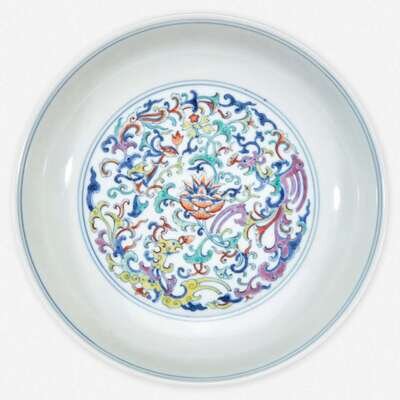 A Chinese doucai-decorated porccelain "Phoenix" dish 斗彩凤纹盘 Qianlong six-character seal mark ?????