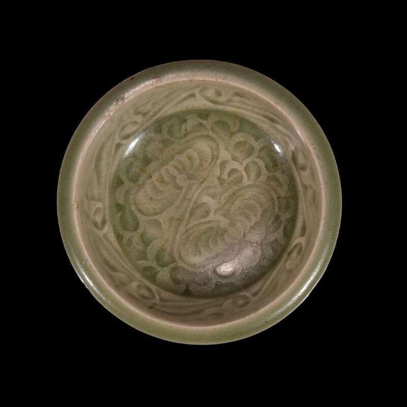 A small Chinese Yaozhou celadon molded brush washer 耀州窑印花小水洗 Northern Song/Jin Dynasty ????