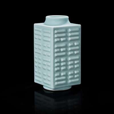 A Chinese pale celadon-glazed "Cong" vase 青釉琮式瓶 Xianfeng six-character mark and possibly of the period ????? ?? ??