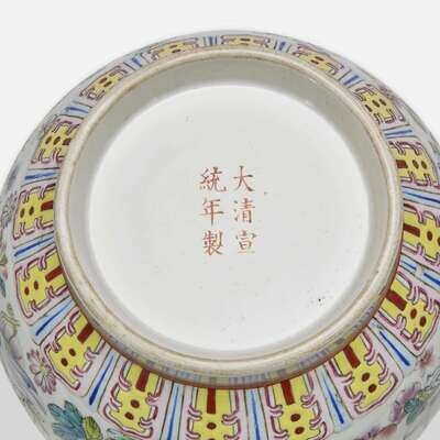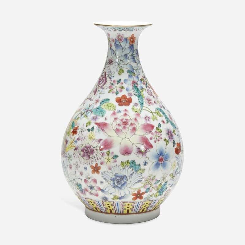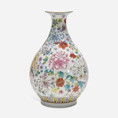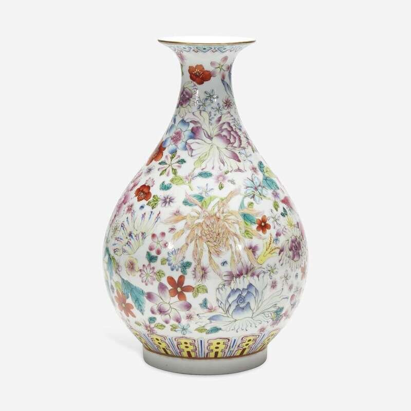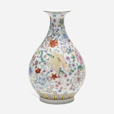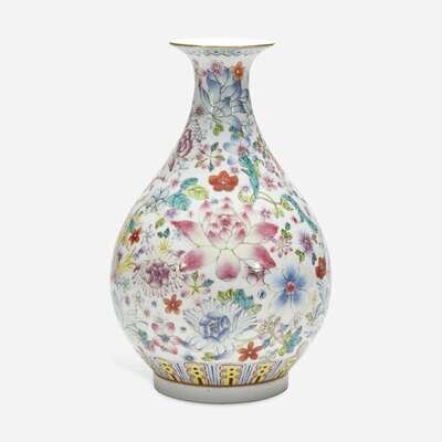 A Chinese famille rose-decorated "100 Flowers" vase, Yuhuchunping 粉彩百花瓶 Xuantong six-character mark and possibly of the period ????? ????