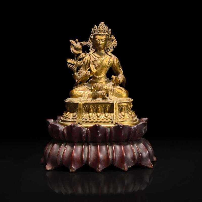 A small Sino-Tibetan gilt-bronze figure of a bodhisattva 中原或西藏地区铜鎏金佛造像 18th century ????