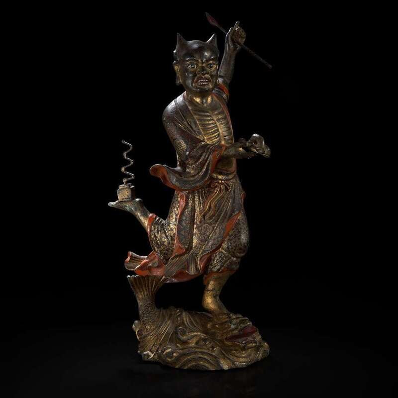 A large Chinese gilt and lacquered bronze figure of "Kui Xing" 铜鎏金魁星 19th century or earlier ???????