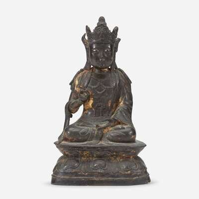 A Chinese lacquered bronze figure of Guanyin 铜加漆观音造像 Ming Dynasty ?