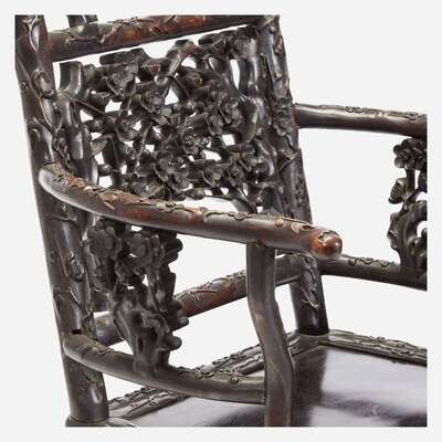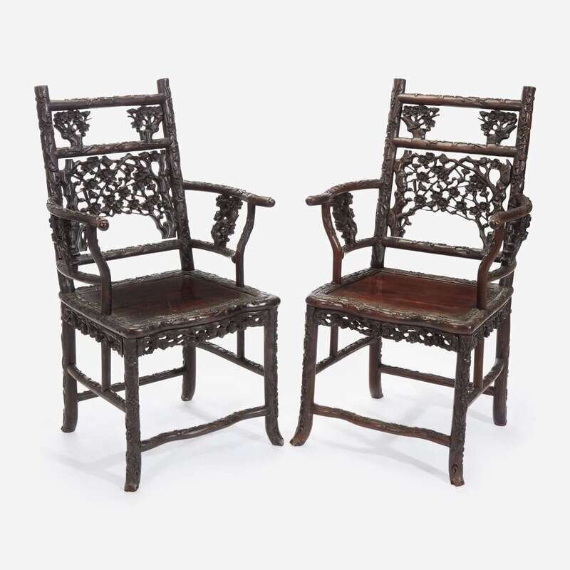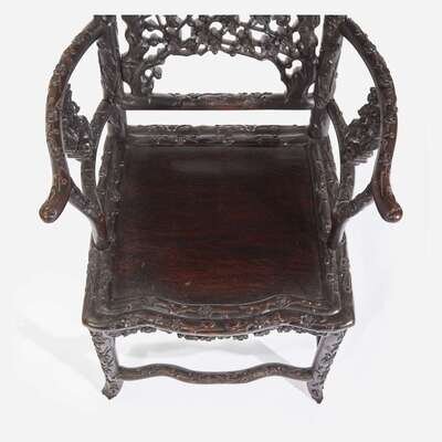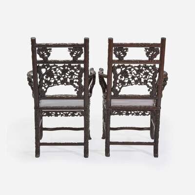 An unusual pair of Chinese carved hardwood armchairs 中国硬木扶手椅一对 Late 19th to early 20th Century ?????????????