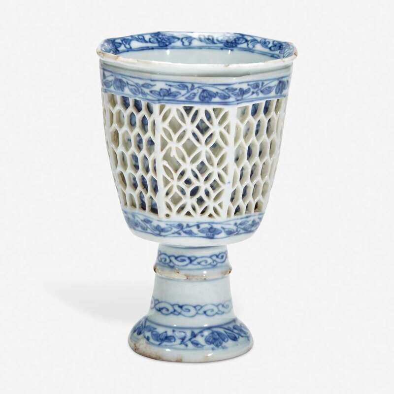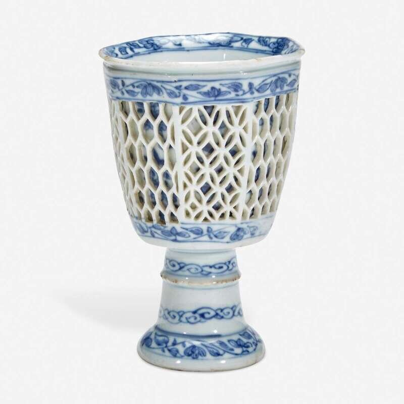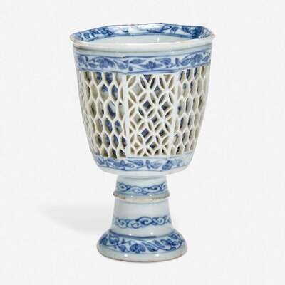 A Chinese blue and white porcelain reticulated stemmed cup 青花镂空高足杯 17th/18th century ??????