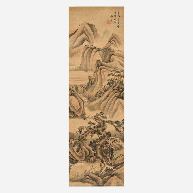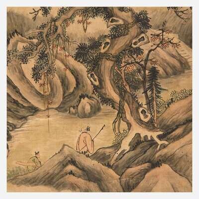 Attributed to Qi Zhijia (Chinese circa 1595-1670) 或祁豸佳(盒子墨书) Travelers in a Mountainous Landscape ?????