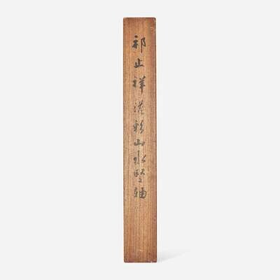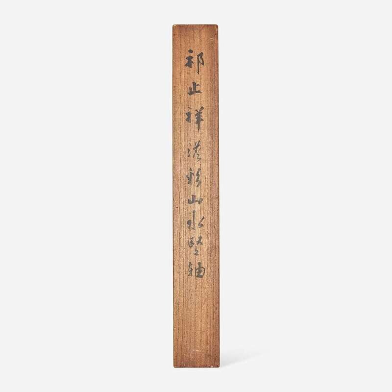 Ink and color on satin, inscribed and with one seal upper right, dated to a renchen year, probably equivalent to 1652, mounted as a hanging scroll; inscribed Japanese wood box, the interior of the cover with lengthy inscription