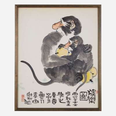 Li Yan (Chinese b.1943-) 李燕 Monkey and Baby with Fruit ???