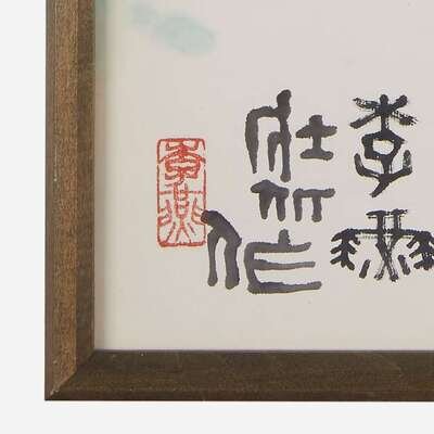 Ink and color on paper, inscribed and with two seals along lower edge; framed and glazed.