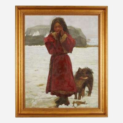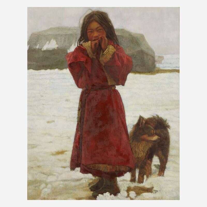 Zhang Xiexiong (Chinese b.1977-) 张谢雄 Tibetan Girl with Dog ?????????? 2000