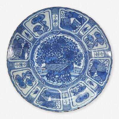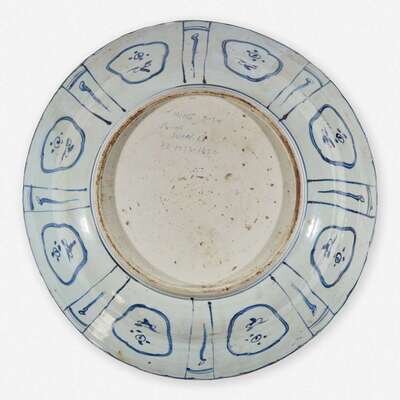 A large Chinese blue and white "Kraak" porcelain charger 克拉克瓷青花大盘 17th century ????