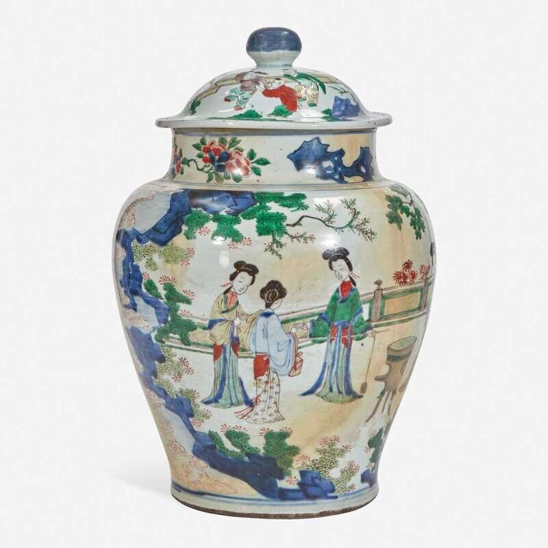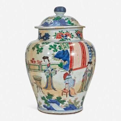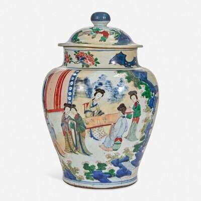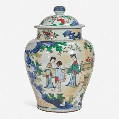 A Chinese wucai-decorated porcelain large jar and cover 五彩带盖大罐 17th century ????