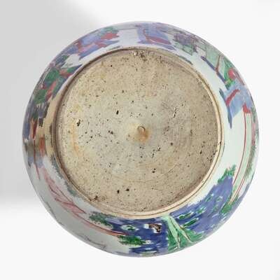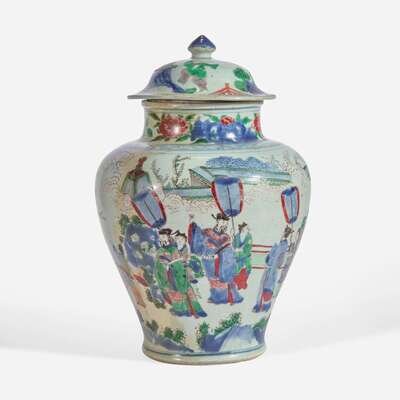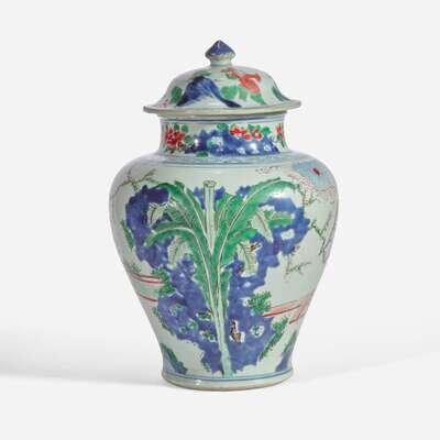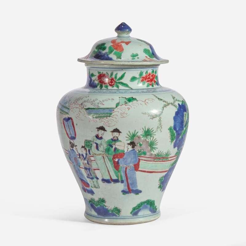 A Chinese wucai-decorated porcelain jar and cover 五彩盖罐 17th century ????