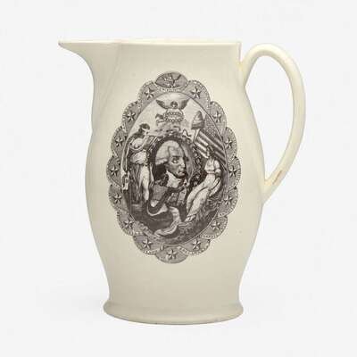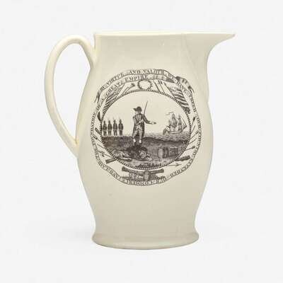 A transfer-decorated creamware jug Probably Liverpool, England, circa 1800