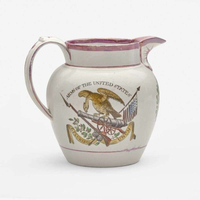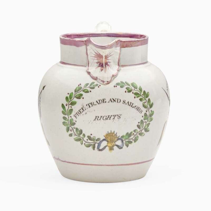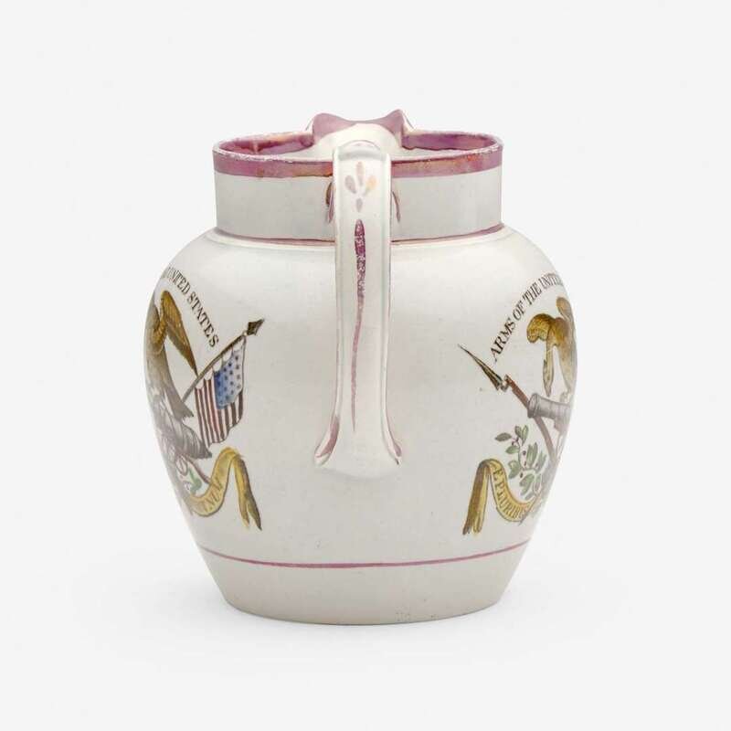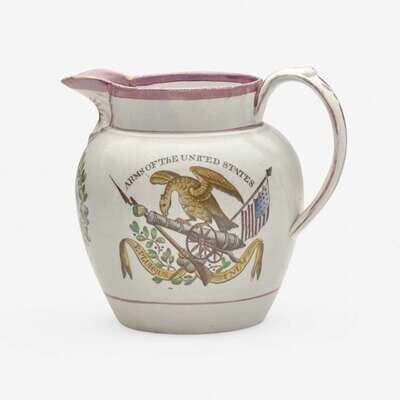 Bearing "Arms of the United States" to both sides, with inscription "Free Trade and Sailors Rights" under spout, lustre rim.