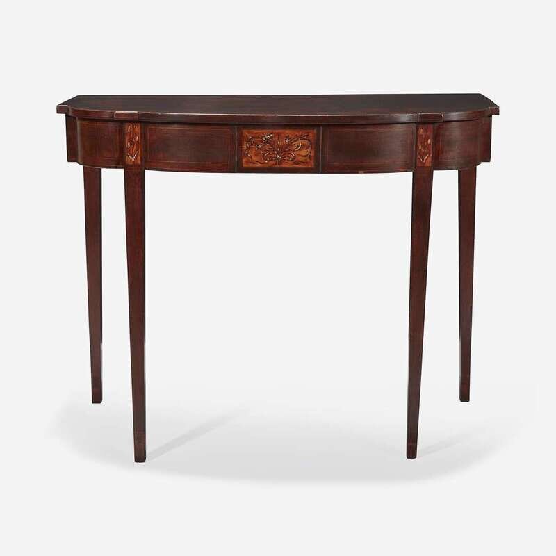 A Federal inlaid and figured mahogany pier table Attributed to Adam Hains (1768-1846), Philadelphia, PA, circa 1800