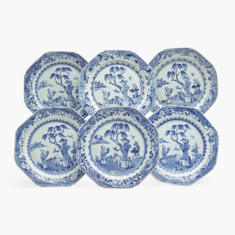 A set of six Chinese Export porcelain blue and white "figural" plates late 18th century