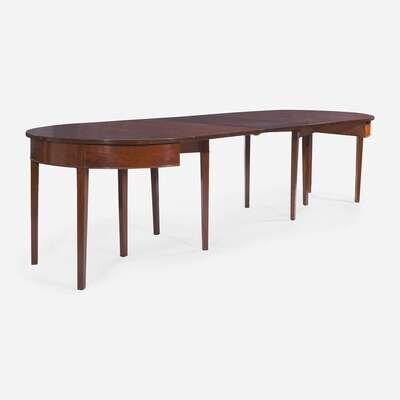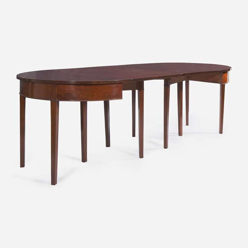 A Federal mahogany two-part demi-lune dining table circa 1800