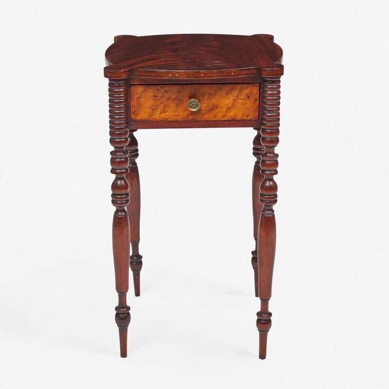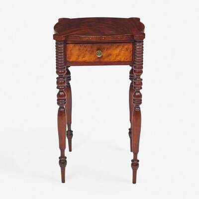 A late Federal figured mahogany and maple work table New England, circa 1810