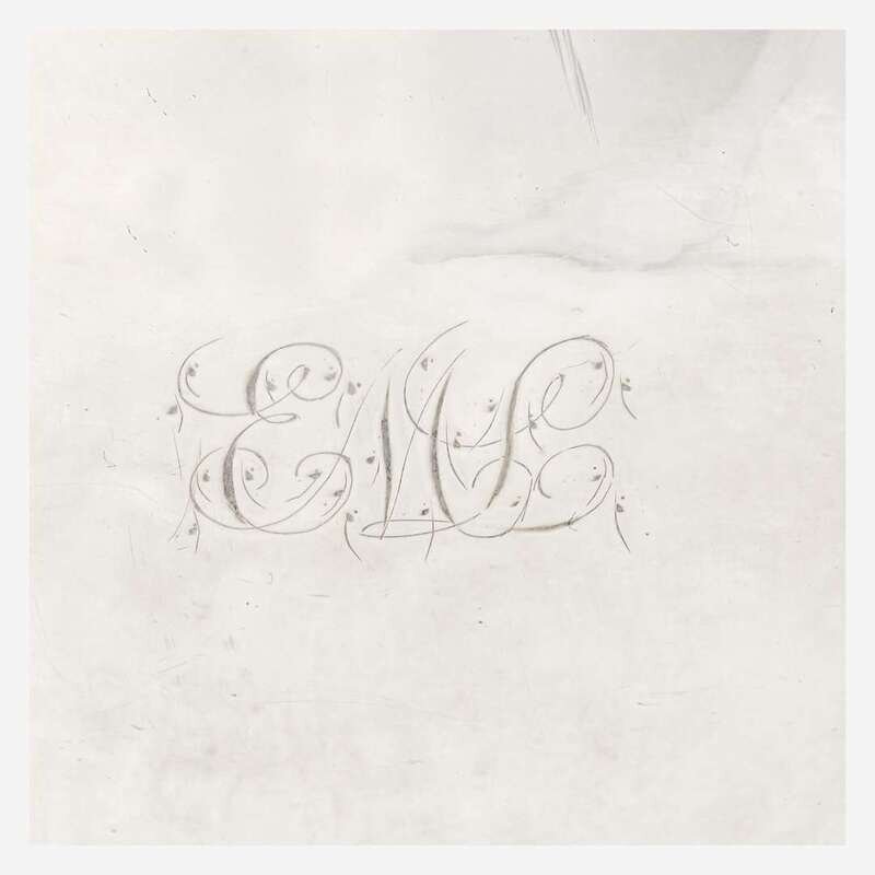 The body with band of grapevine motif, bearing monogram, "EML," marked to underside.