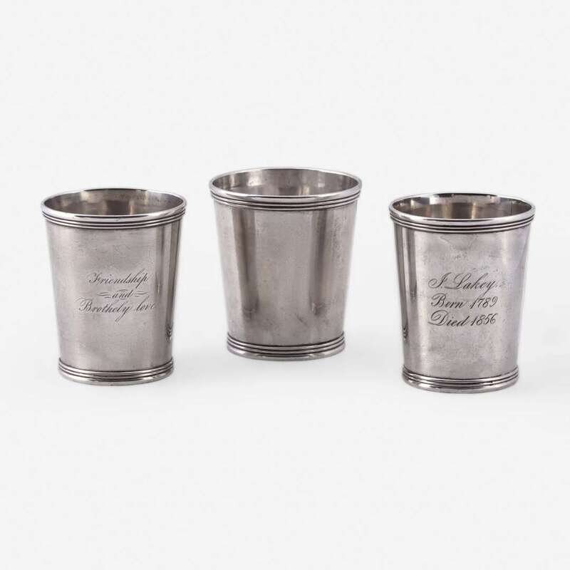 Three coin silver julep cups Edward Kinsey (1810-1865), Cincinnati, OH and Peter L. Krider (1821-1895), Philadelphia, PA
