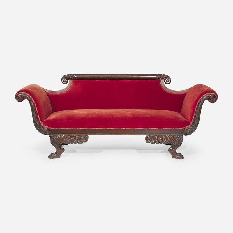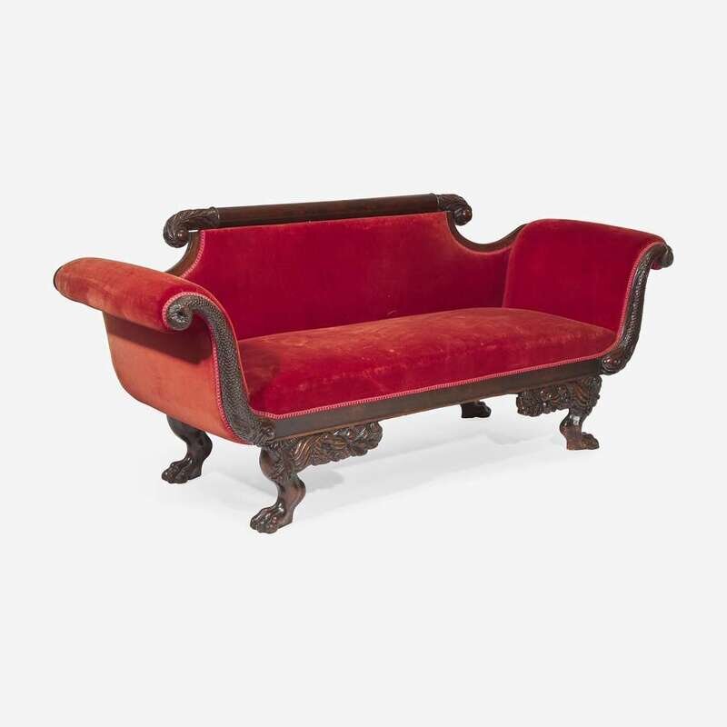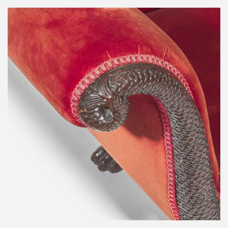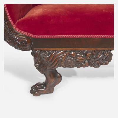 With carved Dolphin arms, cornucopia carved bracket and hairy paw feet.