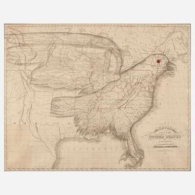 The Eagle Map of the United States Engraved for the Rudiments of National Knowledge Joseph (1767-1837) and James (b. 1811) Churchman, Philadelphia, PA, 1833