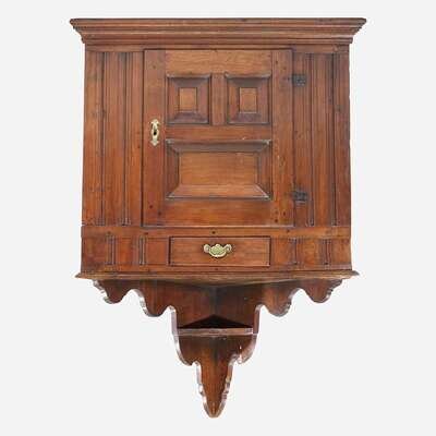 A Queen Anne walnut hanging corner cupboard Chichester, PA, circa 1750