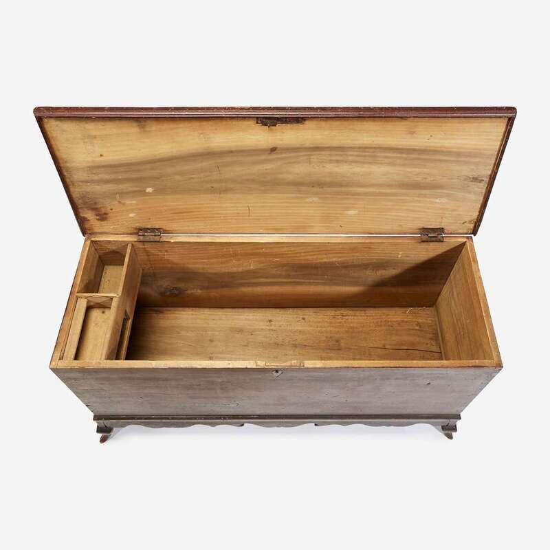 A Federal red-stained poplar "bandy legged" blanket chest Possibly Mason County, Kentucky, early 19th century