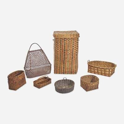 An assorted group of seven painted baskets Northeastern United States, Mostly 19th century