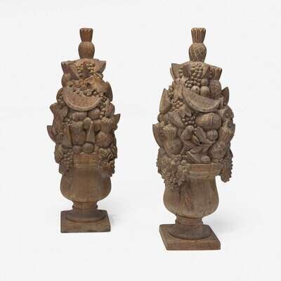 A pair of carved wooden fruit and flower arrangements circa 1855