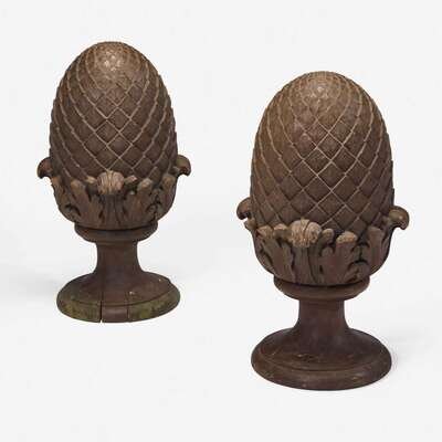 A pair of large carved wooden pineapple finials circa 1865