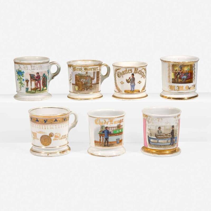 A group of seven occupational porcelain shaving mugs Various Makers, late 19th/early 20th century